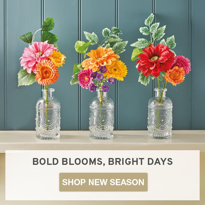 Explore the Bloom Sale and enjoy savings on our collection of faux flowers, artificial flower arrangements and realistic silk flowers that bring lasting beauty to any room. Discover seasonal stems, handcrafted bouquets and elegant centrepieces along with a selection of stylish home décor and thoughtful gift ideas. Every piece is created with lifelike detail and long lasting quality. Shop customer favourites at reduced prices and refresh your home with beautiful artificial flowers and décor while stock lasts.